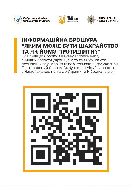 На виконання доручення Уповноваженого Верховної Ради України з прав людини, в межах спільної інформаційної кампанії Офісу Омбудсмана України, Національної поліції та Кіберполіції створено інформаційну брошуру "Яким може бути шахрайство та як йому протидіяти?"